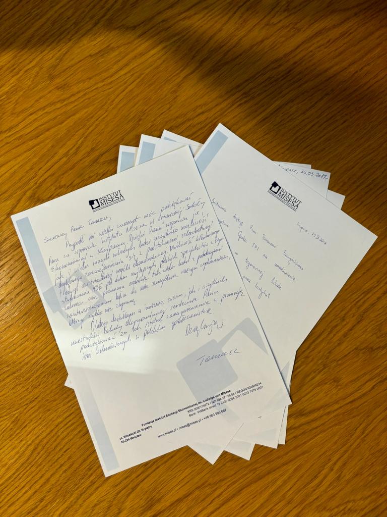 Podziękowania od uczestników za możliwość wzięcia udziału w Szkole Ekonomicznej w Karpaczu