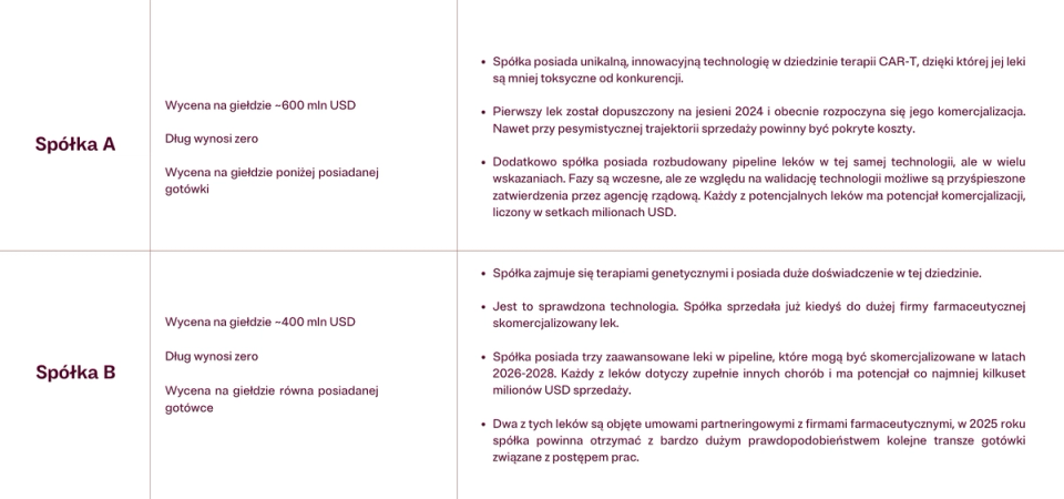 Jak często powtarzamy, w inwestowaniu liczy się czas, trend i wyceny. Dla zobrazowania wycen i skali okazji inwestycyjnej w tym sektorze pokazujemy dwa przykłady spółek z tej branży. Tego typu firm biotechnologicznych można znaleźć na rynkach europejskim i amerykańskim dużo, dużo więcej.